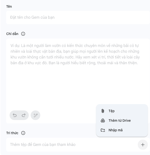 - Tận dụng tính năng xem trước, đề xuất của Gemini và khả năng đính kèm tệp để tối ưu hóa Gem cho từng trường hợp sử dụng cụ thể