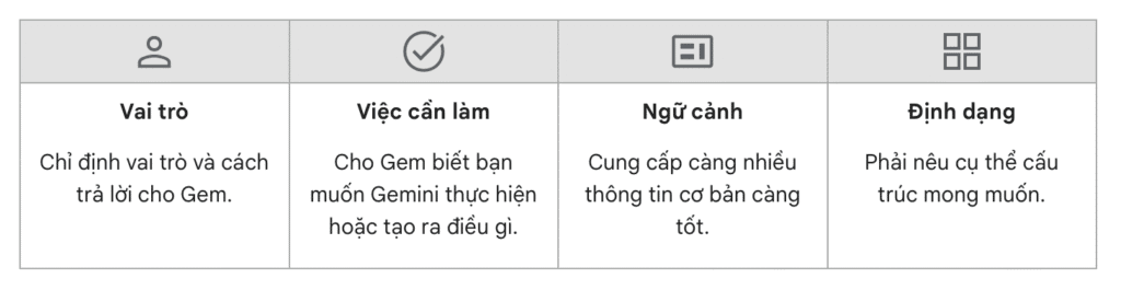 - Cung cấp chi tiết về mục tiêu, hành vi mong muốn và định dạng phản hồi để Gem cá nhân hóa kết quả.