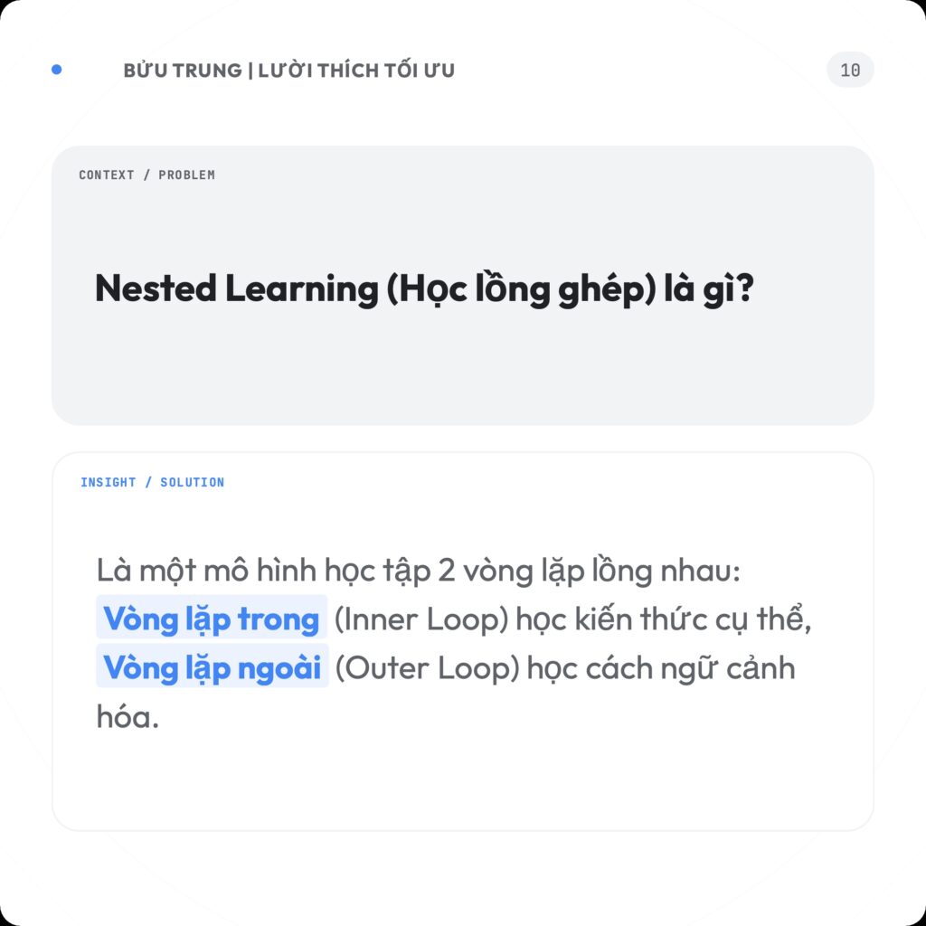 Nested Learning – Nghiên cứu mới nhất của Google – Phần 2/3 by Bửu Trung 30 Tháng mười một, 2025 0 comments54 googleMLnested learning 0 FacebookTwitterCopy LinkYou may also like ChatGPT – Những cái đặt nhanh ban đầu 25 Tháng 1, 2026 ChatGPT – Tác vụ trong chatGPT 25 Tháng 1, 2026 Kế toán x NotebookLM: Tips tối ưu công việc 24 Tháng 1, 2026 Hành chính nhân sự x NotebookLM: Tips tối ưu công việc 12 Tháng 1, 2026 AI RECAP 2025: NHỮNG ĐIỂM NỔI BẬT 2 Tháng 1, 2026 9 KHOÁ HỌC AI MIỄN PHÍ CÓ CHỨNG CHỈ 28 Tháng 12, 2025Leave a Comment Cancel ReplySave my name, email, and website in this browser for the next time I comment.